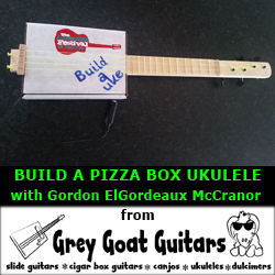 The Pizzalele which has proved a popular instrument, learn how to make your own Pizza box Ukulele ready to play this week end.